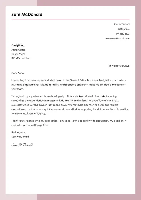 If you lack experience, show your passion for the role and company. Include a relevant achievement if you can (from your studies or volunteer work), and showcase your transferable skills.