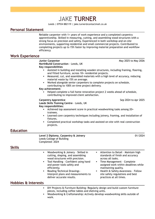 YESWe created the sample on the left using our builder. See other good CV examples like this one.